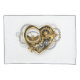 Mechanical, volumetric, steampunk heart with pressure gage, steel and gold gears on white background. Steampunk style.