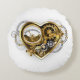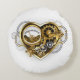 Mechanical, volumetric, steampunk heart with pressure gauge, steel and gold gears on white background. Steampunk style.