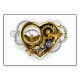 Mechanical, volumetric, steampunk heart with pressure gauge, steel and gold gears on white background. Steampunk style.