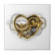 Mechanical, volumetric, steampunk heart with pressure gauge, steel and gold gears on white background. Steampunk style.