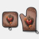 Steampunk Heart with Flowers. Oven Mitt & Pot Holder Set