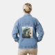 Beautiful Denim Jacket with an image of a Fantasy Steampunk horse. Steel, copper, brass, nuts, bolts, cogs, machine parts make up this interesting creature. In lovely shades of blue gold and turquoise.