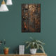 This piece is rich in texture and contrast, with glowing highlights against a dark, rusted backdrop. It evokes a strong sense of mystery and forgotten technology, making it ideal for dystopian narratives, science fiction concepts, or vintage industrial settings. The fusion of retro machinery with futuristic ambience defines the unique visual language of this design.