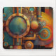 A bold steampunk-inspired geometric artwork featuring metallic circles, brass panels, pipes, bolts, and mechanical structures fused into an abstract industrial composition. The rich blend of teal, copper, and gold tones gives the piece a warm retro-futuristic atmosphere. Perfect for tech accessories, posters, home decor, apparel, and gifts for fans of steampunk, machinery, and industrial design.
