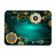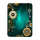 Jewellery, gold watch with a gold chain and keys on a green textural background. Steampunk style.