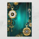 Jewellery, gold watch with a gold chain and keys on a green textural background. Steampunk style.