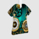 Jewellery, gold watch with a gold chain and keys on a green textural background. Steampunk style.