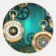Steampunk Jewelry Watch on a Green Background Classic Round Sticker