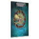 Steampunk inspired industrial rusty clockwork gears, and octopus design on a vibrant blue patina background.