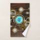 Turquoise lenses with antique watch with brass gears and golden keys on rusty, brown background. Steampunk style.
