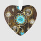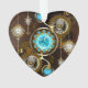 Turquoise lenses with antique watch with brass gears and golden keys on rusty, brown background. Steampunk style.