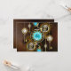 Turquoise lenses with an antique watch with brass gears and golden keys on rusty, brown background. Steampunk style.