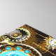 Turquoise lenses with an antique watch with brass gears and golden keys on rusty, brown background. Steampunk style.