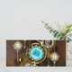 Turquoise lenses with an antique watch with brass gears and golden keys on rusty, brown background. Steampunk style.
