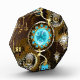 Turquoise lenses with an antique watch with brass gears and golden keys on rusty, brown background. Steampunk style.