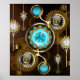 Steampunk Rusty Background with Turquoise Lenses Poster