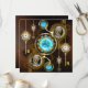 Turquoise lenses with an antique watch with brass gears and golden keys on rusty, brown background. Steampunk style.