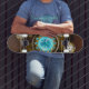Steampunk Rusty Background with Turquoise Lenses Skateboard