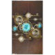 Turquoise lenses with an antique watch with brass gears and golden keys on rusty, brown background. Steampunk style.
