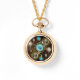 Turquoise lenses with an antique watch with brass gears and golden keys on rusty, brown background. Steampunk style.