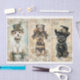 🖤 A whimsical trio of steampunk pups, each full of personality and decked out in charming vintage attire. These small dogs—possibly inspired by breeds like Yorkie, Morkie, or Shih Tzu mixes—wear ornate top hats adorned with gears, cogs, lace, and florals. Each portrait is rich in steampunk detailing: goggles, medallions, clock parts, and layered Victorian textures in warm neutrals, soft teals, and aged parchment tones. Their backgrounds are filled with lace overlays and mechanical elements, perfectly blending fantasy, nostalgia, and canine charm. Ideal for dog-themed decoupage, steampunk mixed media, or unique gift wrap for animal lovers...…… 🖤 NOTE 1. The 18lb tissue paper is just the right weight for all your decoupage needs. The largest size is great for those big, bold projects, while the smaller sizes are perfect for adding detail to your other creations…… 🖤 NOTE 2. This design is available in two options: Left and Right. You can find them in the Collection shown below. If they don’t appear there, try searching for their unique identifiers: DK9L for the Left design and DK9R for the Right version……… 🖤 NOTE 3. All items with this particular design share my unique identifying “Letter/s Number/s” label in the title for easy searching.