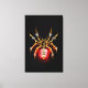 Mechanical, steampunk spider with gold, brass gears and a red glass lamp on a black background. Steampunk style.