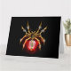 Mechanical, steampunk spider with gold, brass gears and a red glass lamp on a black background. Steampunk style.