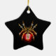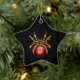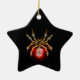 Mechanical, steampunk spider with gold, brass gears and a red glass lamp on a black background. Steampunk style.