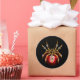 Mechanical, steampunk spider with gold, brass gears and a red glass lamp on a black background. Steampunk style.