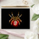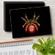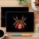 Mechanical, steampunk spider with gold, brass gears and a red glass lamp on a black background. Steampunk style.
