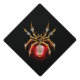 Mechanical, steampunk spider with gold, brass gears and a red glass lamp on a black background. Steampunk style.