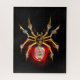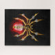 Mechanical, steampunk spider with gold, brass gears and a red glass lamp on a black background. Steampunk style.