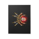 Mechanical, steampunk spider with gold, brass gears and a red glass lamp on a black background. Steampunk style.