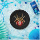 Mechanical, steampunk spider with gold, brass gears and a red glass lamp on a black background. Steampunk style.