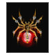 Mechanical, steampunk spider with gold, brass gears and a red glass lamp on a black background. Steampunk style.