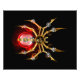 Mechanical, steampunk spider with gold, brass gears and a red glass lamp on a black background. Steampunk style.