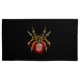 Mechanical, steampunk spider with gold, brass gears and a red glass lamp on a black background. Steampunk style.