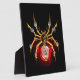 Mechanical, steampunk spider with gold, brass gears and a red glass lamp on a black background. Steampunk style.