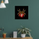 Mechanical, steampunk spider with gold, brass gears and a red glass lamp on a black background. Steampunk style.