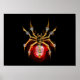 Mechanical, steampunk spider with gold, brass gears and a red glass lamp on a black background. Steampunk style.