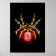 Mechanical, steampunk spider with gold, brass gears and a red glass lamp on a black background. Steampunk style.