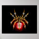 Mechanical, steampunk spider with gold, brass gears and a red glass lamp on a black background. Steampunk style.