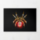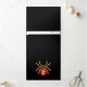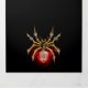 Mechanical, steampunk spider with gold, brass gears and a red glass lamp on a black background. Steampunk style.