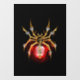 Mechanical, steampunk spider with gold, brass gears and a red glass lamp on a black background. Steampunk style.