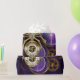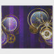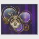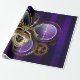 Steampunk spider made of gold and steel with antique watches decorated with gold gears on purple, striped, textured background with lenses and brass gears. Steampunk style.