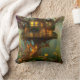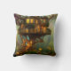Colourful throw pillow created using AI rendering software features a Steampunk style treehouse and observatory with domed rooms and round windows.