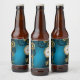 Steampunk turquoise Background with Gears Beer Bottle Label