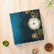 Turquoise, textured, steampunk background with brass and gold gears, a silver key and the clock. Steampunk style.