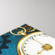 Turquoise, textured, steampunk background with brass and gold gears, a silver key and the clock. Steampunk style.