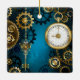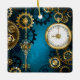 Steampunk turquoise Background with Gears Ceramic Ornament